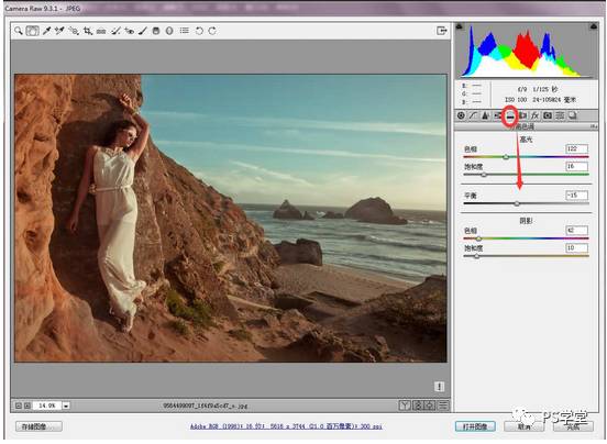 重头戏上演啦,这个地方选择使用分离色调。我首选选择给高光,增加青色的冷色调,让画面更偏冷。