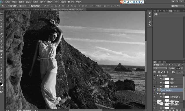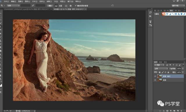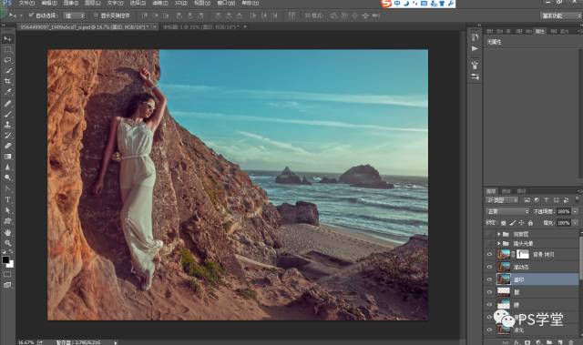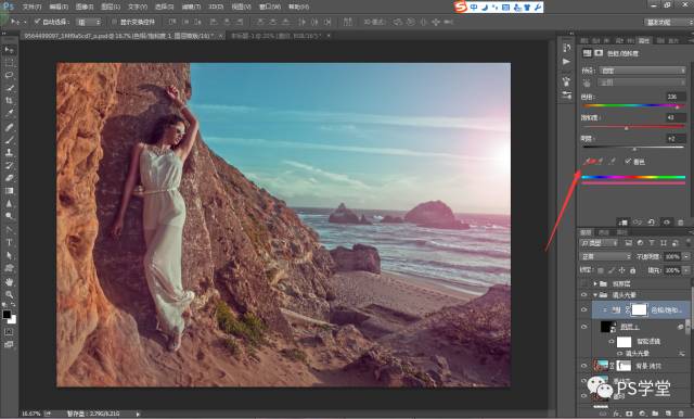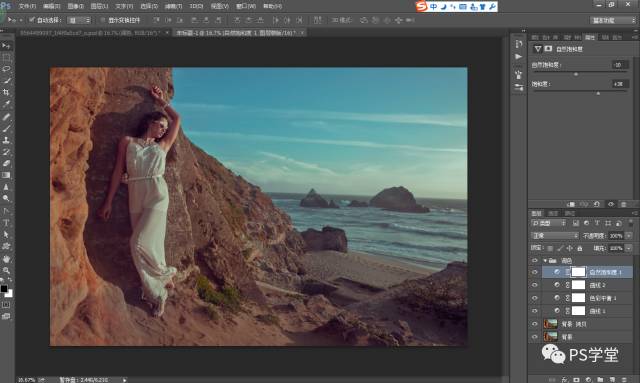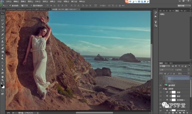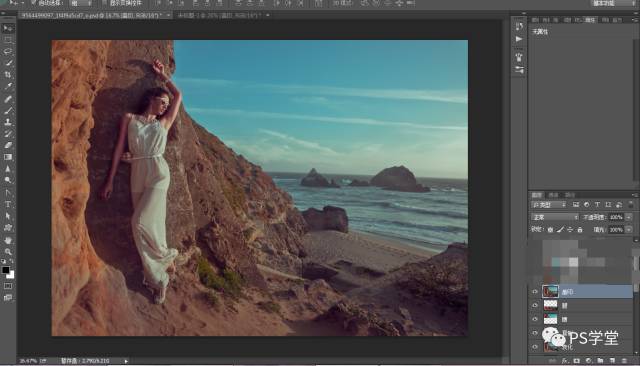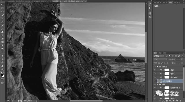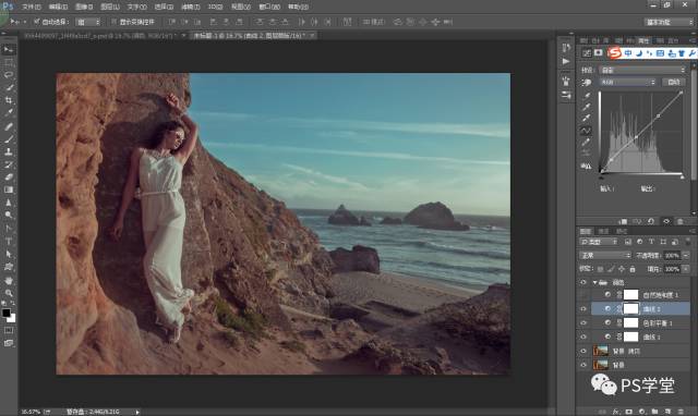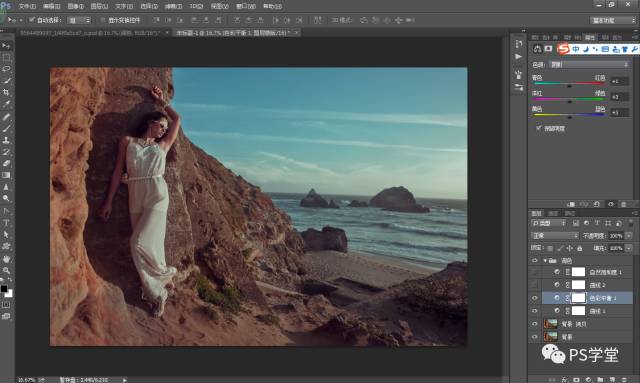 因为我后期想做冷艳的色调,我这一步需要把人物和山体的整个色调,全部减淡变得灰,是为了后期我加颜色。