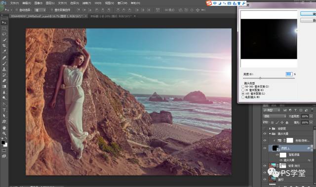 接下来,我们增加镜头光晕效果,为整个照片增加梦幻的效果。根据画面的光影,来定义你的镜头光晕的位置和亮度。