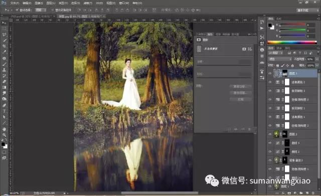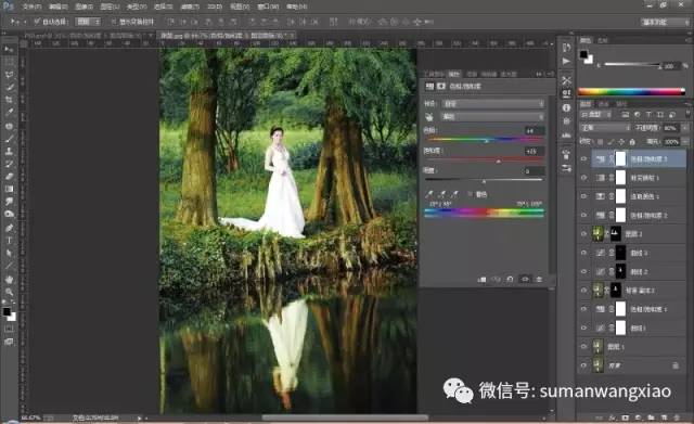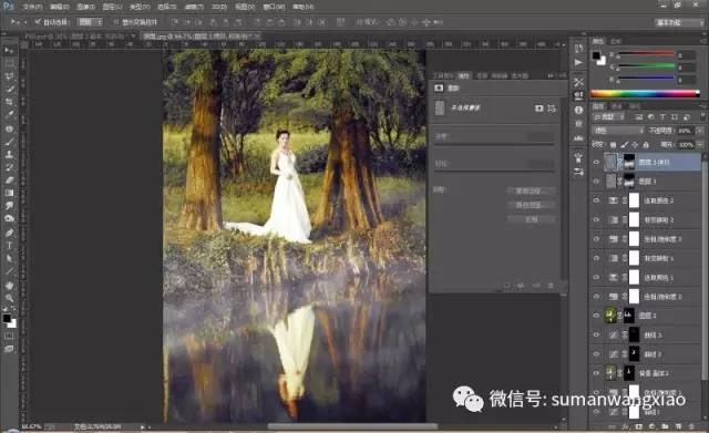 12、创建空白图层,而后添加杂色,对湖面进行处理,有对比!而后复制一层。突出效果!
