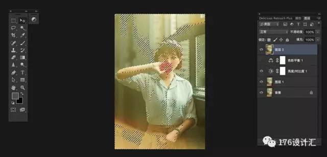(3)建立蒙版,然后使用画笔(降低透明度),把细节部分擦出来;