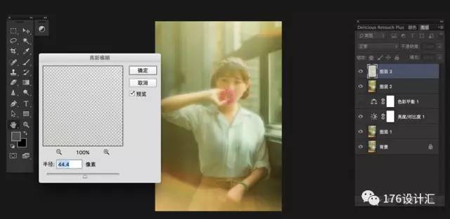 (2)选择滤镜-模糊-高斯模糊,适当调整;