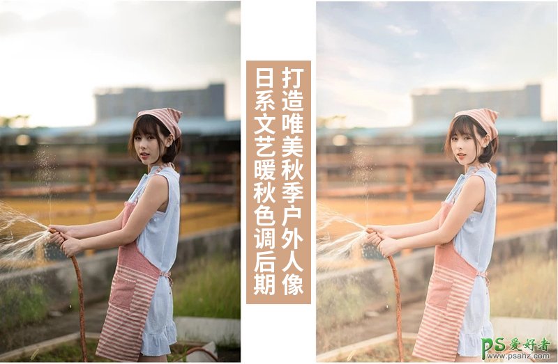 Photoshop给唯美风格户外美女人像图片调出日系文艺暖秋色调,原图与效果图: