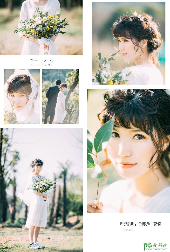 PS婚纱照调色教程:给清纯少女外景婚纱照调出唯美的阿宝色,调出通透的皮肤效果,先来看一些效果: