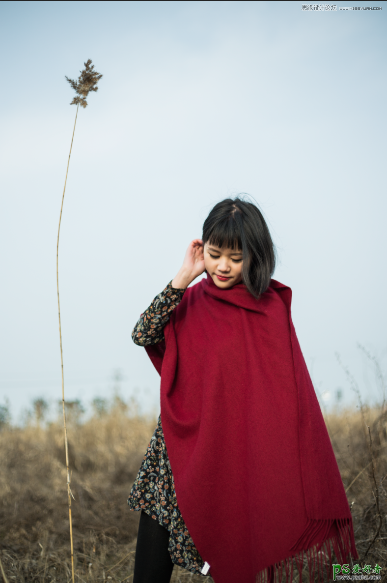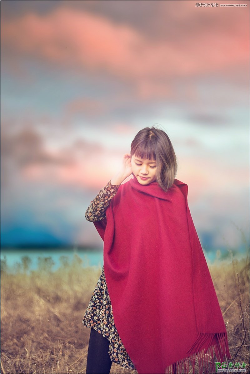 Photoshop给秋季湖边拍摄的可爱美女人像照片调出意境的暖色效果