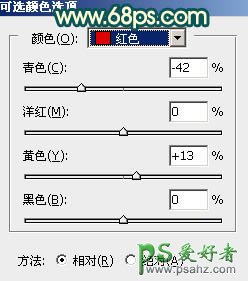 6、创建可选颜色调整图层,对红、黄、绿、青进行调整,参数设置如图18 - 21,效果如图22。这一步给图片增加橙红色,并把绿青色调暗一点。
