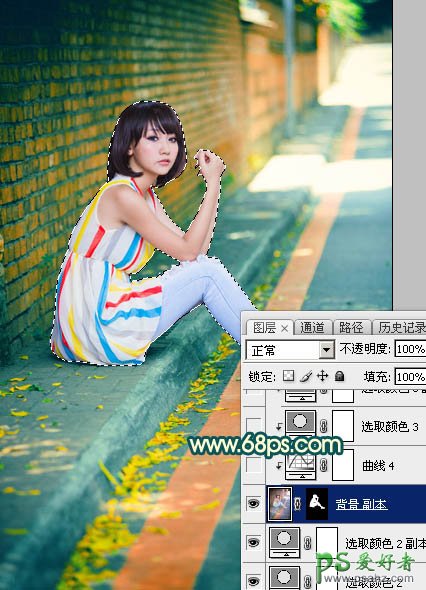 8、把背景图层复制一层,按Ctrl + Shift + ] 置顶,用钢笔工具把人物部分抠出来,转为选区后添加图层蒙版,效果如下图。