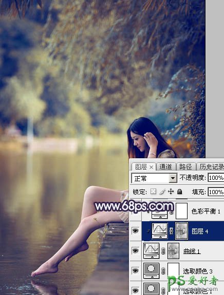 3、按Ctrl + Alt + 2 调出高光选区,按Ctrl + Shift + I 反选得到暗部选区,然后创建曲线调整图层,对红,蓝通道进行调整,参数及效果如下图。这一步主要给图片暗部区域增加蓝色。