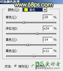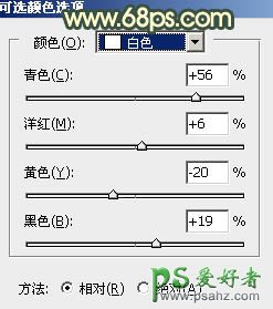 3、创建可选颜色调整图层,对黄、绿、白、黑进行调整,参数设置如图9 - 12,效果如图13。这一步把图片中的黄绿色转为橙黄色,高光区域增加淡青色。