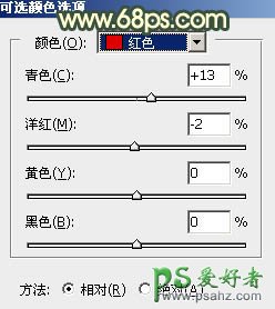 6、创建可选颜色调整图层,对红、黄、蓝、中性、黑进行调整,参数设置如图17 - 21,确定后创建剪切蒙版,效果如图22。这一步主要给图片暗部增加橙红色。