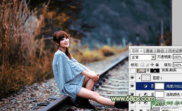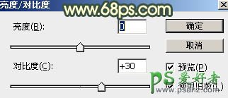 7、创建亮度/对比度调整图层,适当增加对比度,参数设置如图23,确定后创建剪切蒙版,效果如图24。这一步给暗部增加对比度。