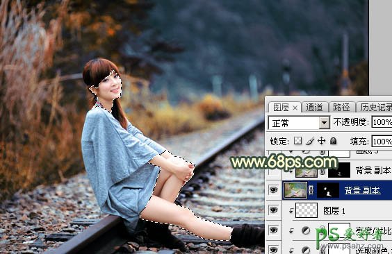 8、把背景图层复制一层,按Ctrl + Shift + ] 置顶,用钢笔工具把人物脸部及肤色部分抠出来,转为选区后添加图层蒙版,效果如下图。