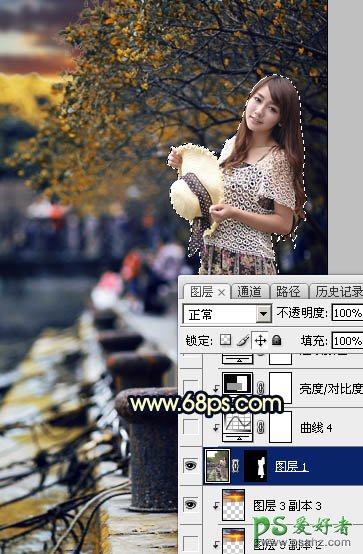 15、把背景图层复制一层,按Ctrl + Shift + ] 置顶,用钢笔工具把人物部分抠出来,转为选区后添加图层蒙版,效果如下图。