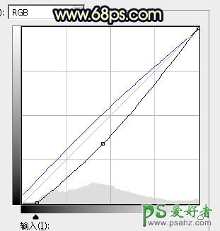 16、创建曲线调整图层,对RGB,蓝通道进行调整,参数设置如图28,确定后创建剪切蒙版,效果如图29。这一步把人物部分压暗一点,并增加蓝色。