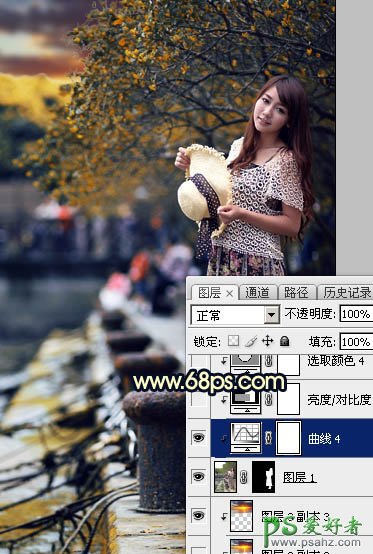 PS调色教程:给码头边自拍的美女写真照调出唯美意境风格的蓝黄色
