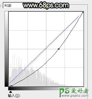 20、创建曲线调整图层,对RGB,蓝通道进行调整,参数设置如图37,确定后创建剪切蒙版,再把蒙版填充黑色,然后用透明度较低柔边白色画笔把人物右侧背光区域涂暗一点,效果如图38。