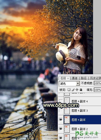 PS调色教程:给码头边自拍的美女写真照调出唯美意境风格的蓝黄色