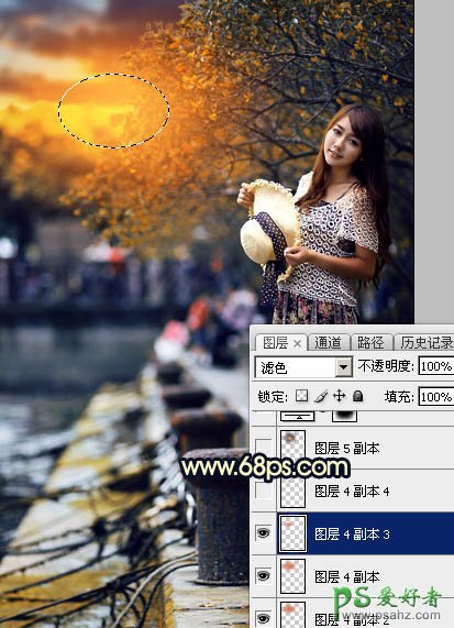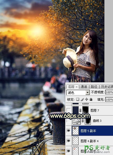 PS调色教程:给码头边自拍的美女写真照调出唯美意境风格的蓝黄色