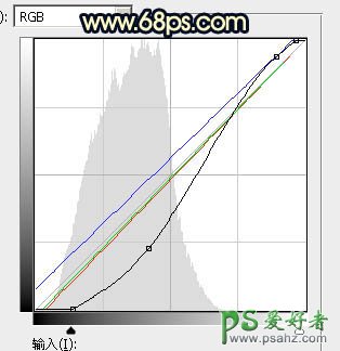 3、按Ctrl + Alt + 2 调出高光选区,按Ctrl + Shift + I 反选得到暗部选区,然后创建曲线调整图层,对RGB、红、绿、蓝通道进行调整,参数及效果如下图。这一步把图片暗部颜色大幅压暗,并增加蓝色。