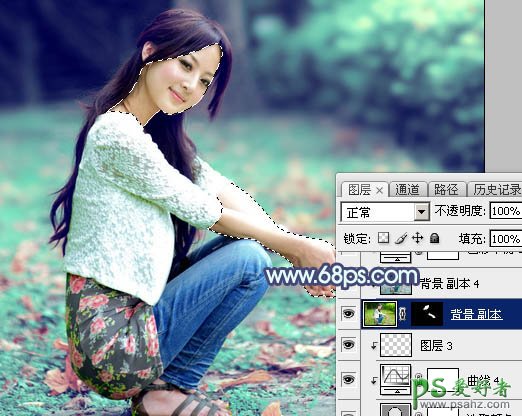 14、把背景图层复制一层,按Ctrl + Shift + ] 置顶,用钢笔工具把人物脸部及手臂部分抠出来,转为选区后添加图层蒙版,效果如下图。