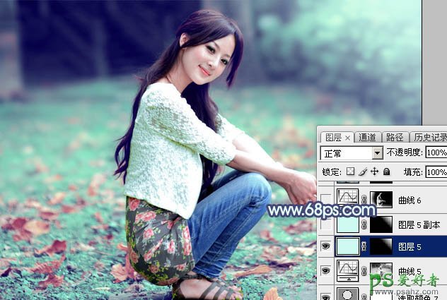 18、创建纯色调整图层,颜色设置为淡青色:#CEF9F0,确定后把蒙版填充黑色,然后用透明度较低柔边白色画笔把右上角区域擦出来,效果如下图。