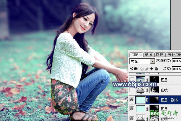 19、按Ctrl + J 把当前纯色调整图层复制一层,混合模式改为“柔光”,效果如下图。这两步给图片增加淡青色高光。