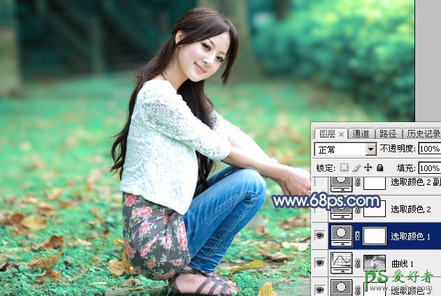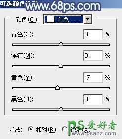 4、创建可选颜色调整图层,对黄、绿、白进行调整,参数设置如图8 - 10,效果如图11。这一步主要把图片中的绿色转为青绿色。