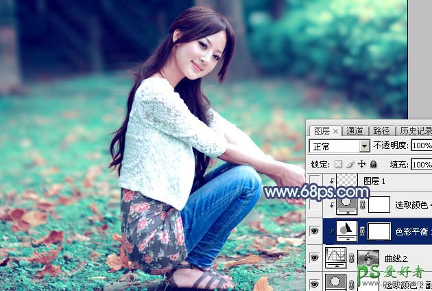 Photoshop给可爱的果子美女生活照调出甜美性感的粉青色效果