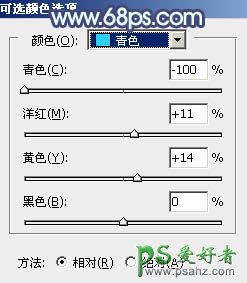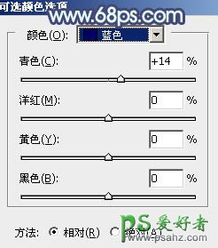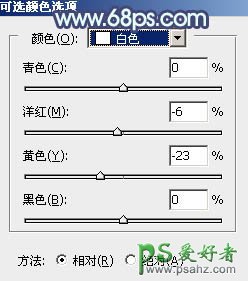 9、创建可选颜色调整图层,对青、蓝、白进行调整,参数设置如图23 - 25,确定后创建剪切蒙版,效果如图26。这一步把图片中的青色调淡一点。