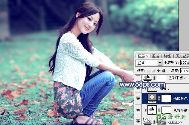 Photoshop给可爱的果子美女生活照调出甜美性感的粉青色效果