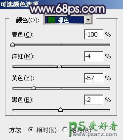 2、创建可选颜色调整图层,对黄、绿、白、黑进行调整,参数设置如图5 - 8,效果如图9。这一步把图片中的黄绿色转为黄褐色。