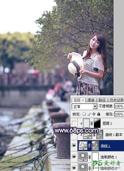 3、按Ctrl + Alt + 2 调出高光选区,创建曲线调整图层,对RGB、红、绿、蓝通道进行调整,参数设置如图10 - 13,效果如图14。这一步把图片高光区域调亮一点,并增加蓝色。