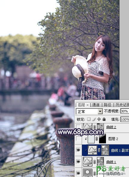 4、按Ctrl + J 把当前曲线调整图层复制一层,不透明度改为:30%,然后按Ctrl + Alt + G 创建剪切蒙版,效果如下图。