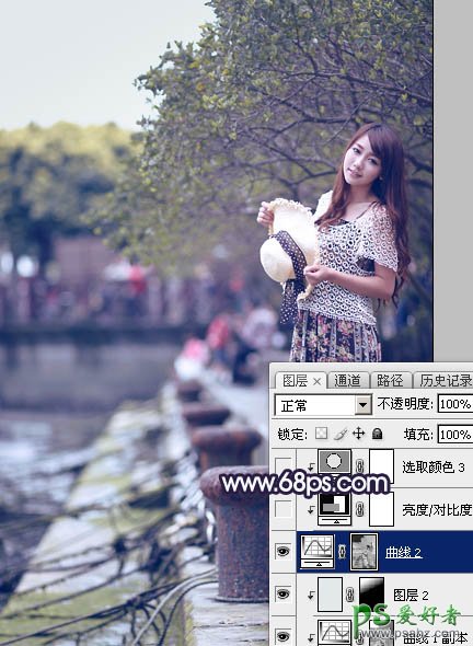 6、按Ctrl + Alt + 2 调出高光选区,按Ctrl + Shift + I 反选得到暗部选区,然后创建曲线调整图层,对RGB、红、蓝通道进行调整,参数设置如图17 - 19,效果如图20。这一步主要给图片暗部增加蓝色。