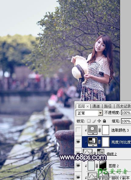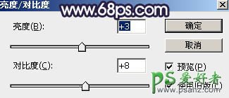 7、创建亮度/对比度调整图层,适当增加亮度及对比度,参数设置如图21,确定后创建剪切蒙版,效果如图22。