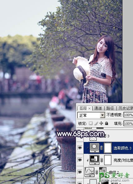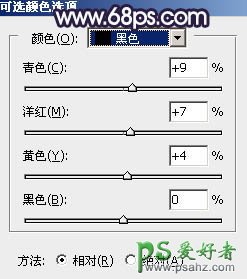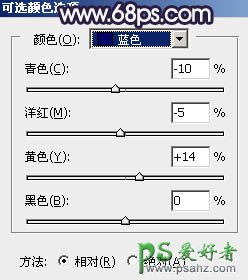 8、创建可选颜色调整图层,对蓝、白、黑进行调整,参数设置如图23 - 25,确定后创建剪切蒙版,效果如图26。这一步微调图片暗部颜色。