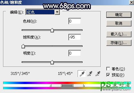 1、打开原图素材大图,创建色相/饱和度调整图层,对全图、红、黄、绿进行调整,参数设置如图1 - 4,效果如图5。这一步快速降低主色饱和度,得到中性