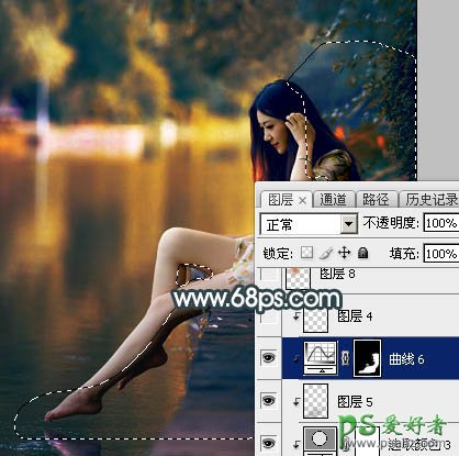 18、用套索工具把肤色背光区域勾出来,羽化6个像素后创建曲线调整图层,稍微压暗一点,确定后创建剪切蒙版。