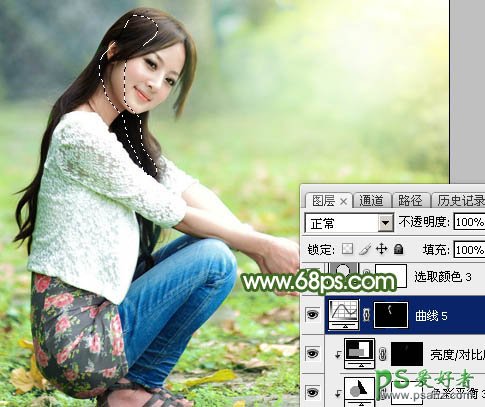 19、用曲线把肤色暗部区域调暗一点,过程如下图。