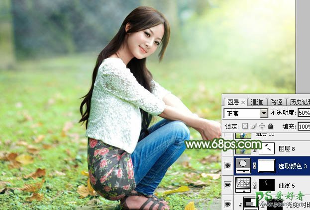 20、创建可选颜色调整图层,对红、黄、白进行调整,参数设置如图38 - 40,确定后把图层不透明度改为:50%,效果如图41。这一步微调图片中的暖色及高光颜色。