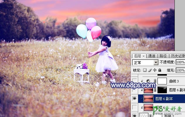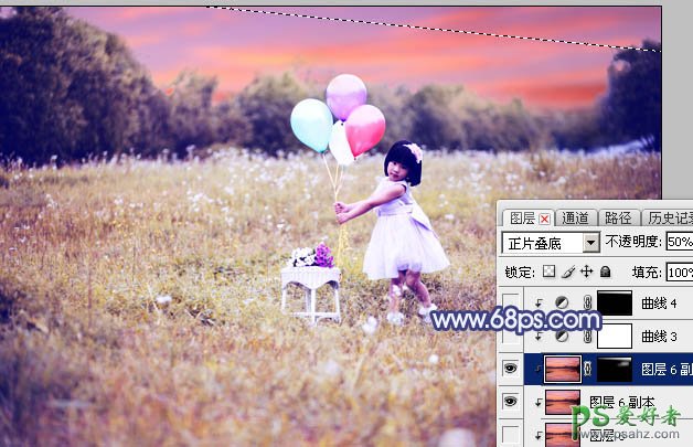 14、按Ctrl + J 把天空图层复制一层,创建剪切蒙版后把混合模式改为“正片叠底”,不透明度改为:50%;按住Alt键添加图层蒙版,用透明度较低柔边白色画笔把天空顶部区域涂暗一点,效果如下图。