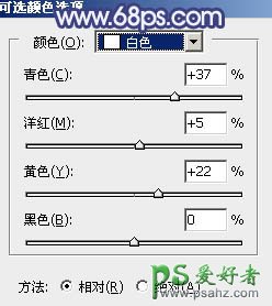 16、创建可选颜色调整图层,对红、黄、白进行调整,参数设置如图38 - 40,确定后创建剪切蒙版,效果如图41。这一步主要减少天空部分的红色。