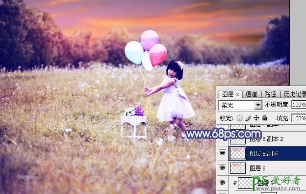 19、按Ctrl + J 把当前图层复制一层,混合模式改为“柔光”,不透明度改为:100%,效果如下图。