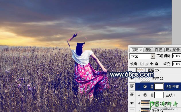 PS美女图片调色:给荒原上小清新女生外景艺术照调出秋季暖色调