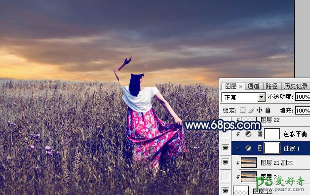 PS美女图片调色:给荒原上小清新女生外景艺术照调出秋季暖色调
