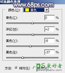 5、创建可选颜色调整图层,对黄色进行调整,参数设置如图16,确定后按Ctrl + Alt + G 创建剪切蒙版,效果如图17。这一步把图片中的黄色调淡一点。