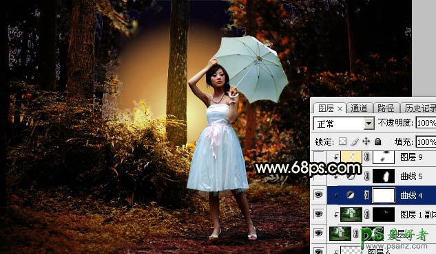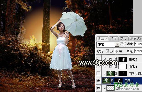 14、把背景图层复制一层,按Ctrl + Shift + ] 置顶,用钢笔工具把人物和雨伞部分抠出来,转为选区后添加图层蒙版,如下图。
