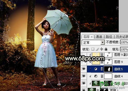 16、创建曲线调整图层,对RGB,红通道进行调整,参数设置如图30,确定后创建剪切蒙版,再把蒙版填充黑色,然后用套索工具把人物背光区域勾出来,羽化15个像素后填充白色,如图31。