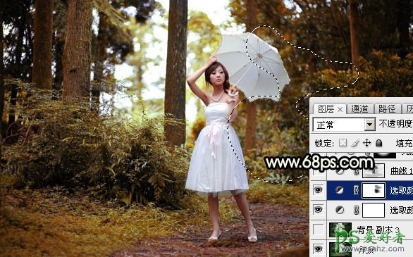 Photoshop给树林中自拍的唯美少女艺术摄影写真照调出梦幻的晨光色调,通过后期调色,让美女照片变得更加温暖浪漫,色彩也更加丰富,喜欢的朋友们好好学习一下吧! 原图 最终效果 1、打开素材图片大图,创建可选颜色调整图层,对黄、绿、青、中
