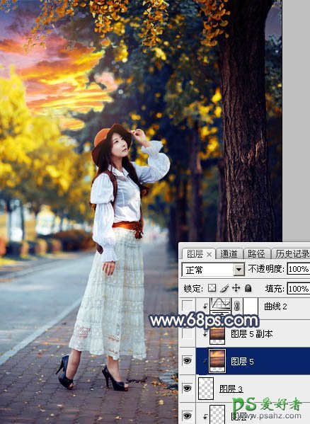 Photoshop给外景自拍的性感女性生活照调出夕阳下唯美意境的色彩